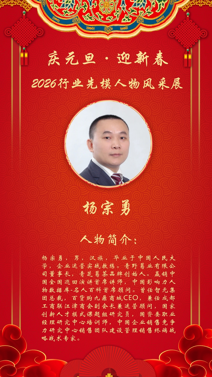 杨宗勇现任青野葛业有限公司董事长,同时是青芝葛茶品牌的创始人。在商业培训领域,他担任赢销中国全国巡回演讲首席讲师、中国影响力人物数据库-名人百科首席顾问,还曾是智元集团总裁、百货购九鼎商城CEO。此外,他在多个商会、研究机构也担任重要职务,包括成都工商联江津商会副会长兼运营顾问、国家创新人才模式课题组研究员、国资委职业经理研究中心培训师等,更是中国企业销售竞争力研究中心销售团队建设管理销售终端战略战术专家,被国资委职业经理研究中心评为最优秀的个人和职业发展潜能培训师以及最优秀的企业业绩成长发展管理培训师。2022年,他还受聘为决策中国专家智库金融证券行业客座教授。