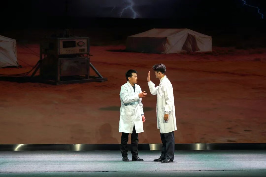 此次党课打破传统单向宣讲模式,邀请多位来自不同领域的主讲人登上讲台,采用“主讲人讲述+多元情景演绎 + 音视频辅助+互动沉浸”的融合课程形式,以创新表达激活红色资源。活动将核试验基地的艰苦创业史与新时代巴州发展实践相结合,让党课既有历史深度,又有现实温度。情景剧《追寻》通过邓稼先与家人的隔空对话,展现了科研工作者“苟利国家生死以,岂因福祸避趋之”的家国情怀;穿越情景剧《马兰对话》以跨越57年的时空交流,让革命先烈与新时代融媒体记者相遇,在问答中展现盛世中国的发展成就,凸显马兰精神的时代价值。“这种情景式党课太震撼了!先辈们在那样艰苦的条件下为国奉献,他们的故事让我热泪盈眶。”台下观众不时报以热烈掌声。活动中《毛主席的战士最听党的话》《荣光》《信仰之树》等一首首经典歌曲、原创曲目穿插演绎,其间还呈现男女二重唱、女声小合唱、童声合唱等特色内容,配合震撼的舞台效果,让党员群众在视听盛宴中沉浸式感悟初心使命,使马兰精神真正入脑入心。