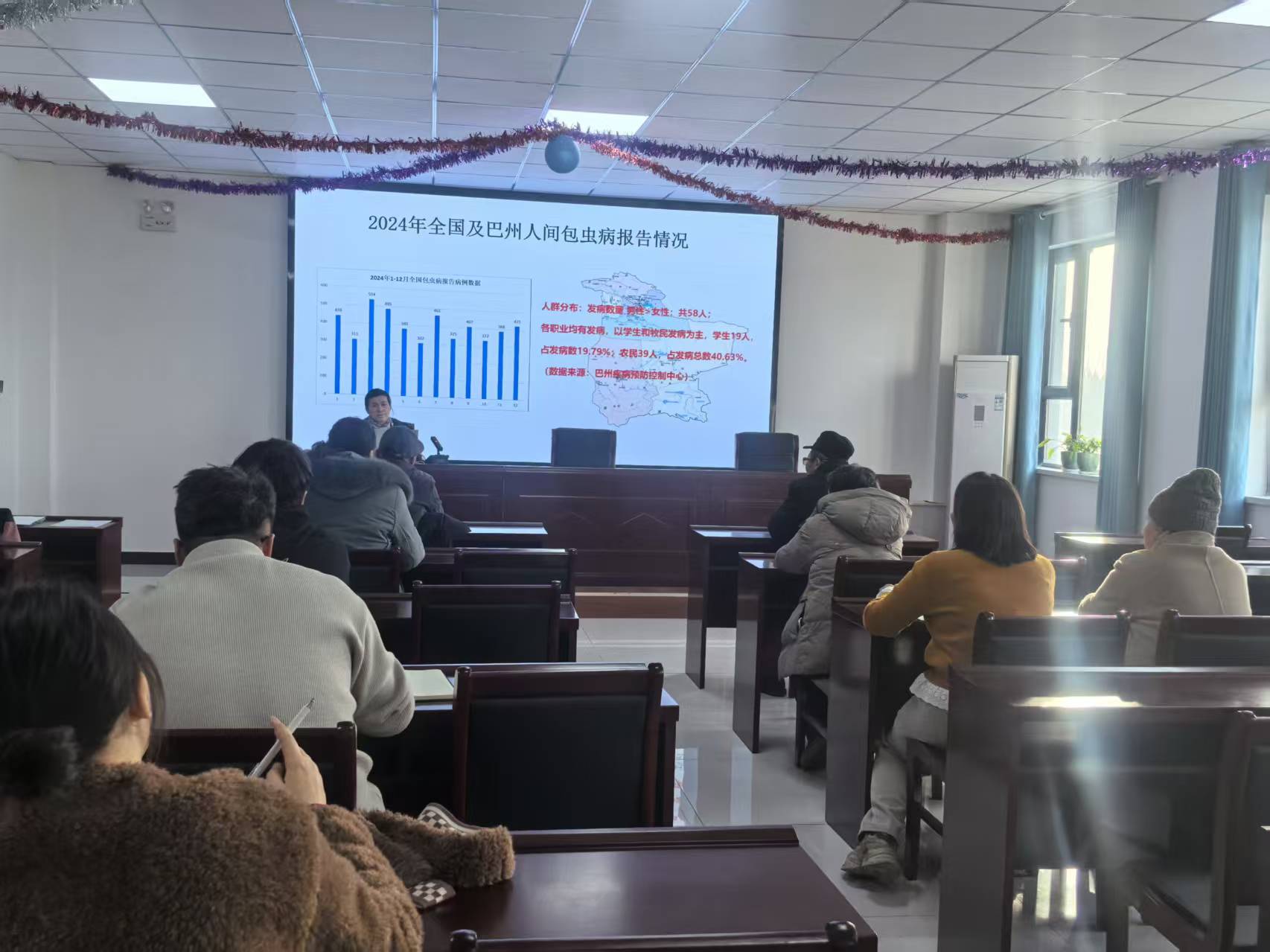 为实现宣传全覆盖、无死角,乡党委构建“线上+线下”立体化宣传矩阵。线上通过微信公众号、各村微信群常态化推送动物防疫法律法规、免疫接种流程、圈舍消毒技巧等知识,转发生动直观的防疫科普短视频,方便农牧民随时查阅学习;线下在村委会、养殖集中区等重点场所发放《动物防疫法摘要》《冬季动物防疫指南》等资料,并邀请州畜牧专家开展专题讲座,现场演示疫苗储存、规范接种、病死畜禽无害化处理等实操技能,累计开展培训2场次,覆盖农牧民100余人次。