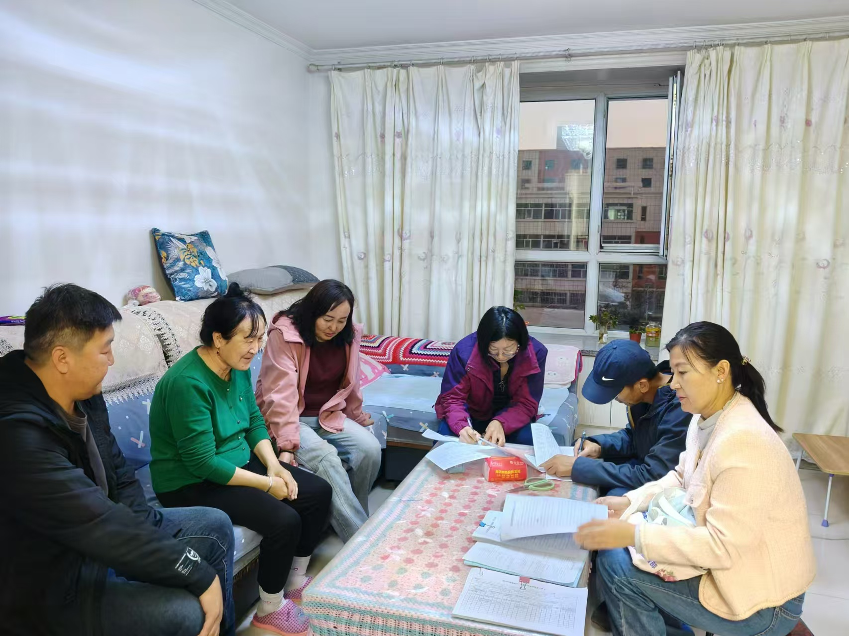 在宣讲政策的同时,村干部聚焦牧民急难愁盼,重点关注牧业养殖、饲草储备、牲畜防疫、销售增收等核心问题,详细询问老人就医、孩子上学、饮水用电、冬季取暖等生活难题,格外牵挂困难牧民、孤寡老人、残疾牧民等特殊群体,逐一登记民情台账,做到牧情全掌握、诉求全收录。针对牲畜疫病防治难题,现场联系畜牧技术人员上门指导;针对饲草供应不足、运输不便问题,及时协调调配资源;针对政策知晓不全面问题,结合两会精神耐心细致讲解;针对邻里草场边界、畜牧纠纷,现场调解化解,实现小事不出村、大事不出乡。