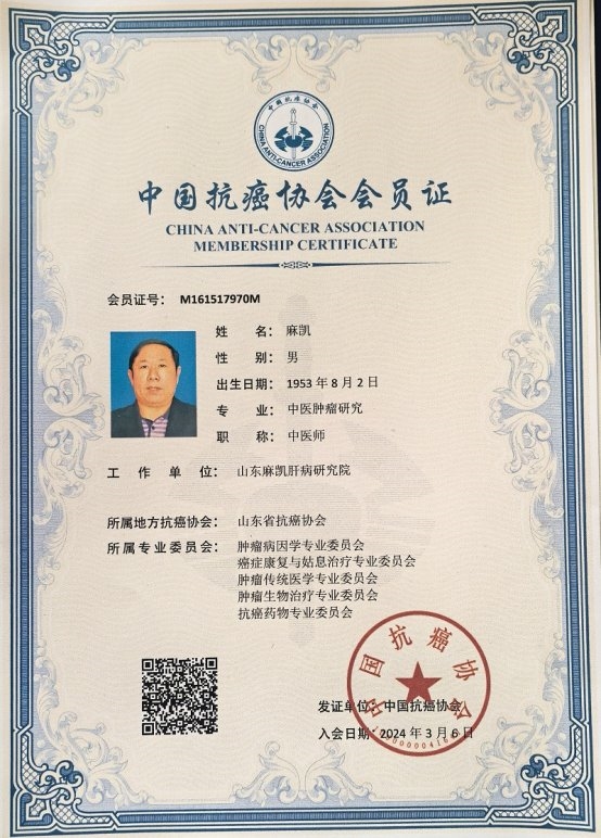 4、麻凯教授所研制治疗肝病的系列药品经四十年临床验证,疗效之高,被社会各界瞩目。他本人被北京国际卫生医学研究院聘为一级教授,被中华医学会和北京国际名人研究会聘为会员,被美国中医研究院聘为终生名誉教授,被世界中医药研究会聘为会员,被香港现代医学研究中心聘为高级研究员。他的主要论文《治疗肝病之我见》在第三届世界传统医学交流大会上获“突出贡献成果”奖,《治疗肝病几个问题之我见》、《调蛋白增免疫治疗肝病有效途径》、《愈肝散治疗丙肝30例》分别在山东省首届肝病学术会议和山东省中医肝胆病等学术会议作重点交流。他的论文《中医治肝经验谈》在全国多家媒介发表并演讲和多次获奖。