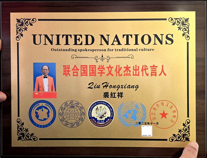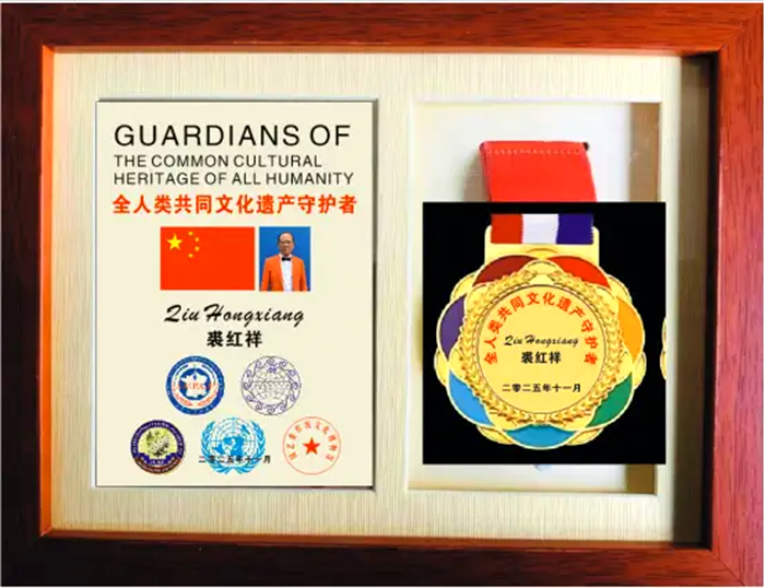 2025年12月,裘红祥被相关部门评选为《全人类共同文化遗产守护者》,并出任《联合国国学文化杰出代言人》。