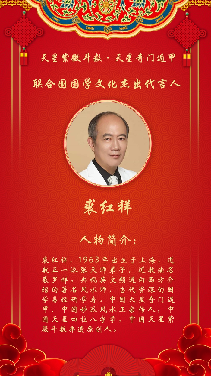 裘红祥是中国天星奇门遁甲与妙派风水的正宗传人,同时也是中国天星四柱八字学和中国天星紫微斗数的非遗原创人。