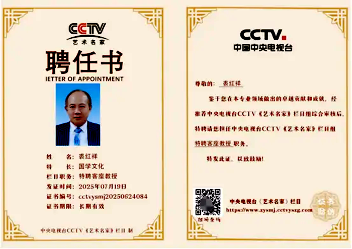 2025年7月,中央电视台CCTV《艺术名家》栏目组聘请担任:特聘客座教授。