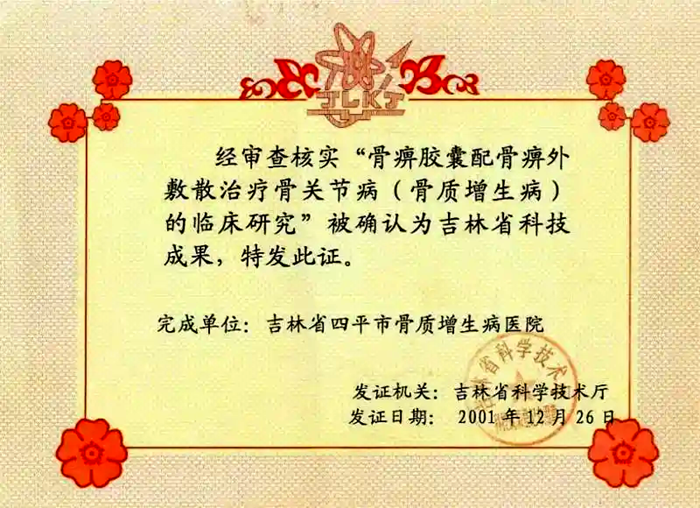 40余年间,王守永始终聚焦骨伤病、咳喘病、胃肠病等疑难病症,尤其在风湿骨病诊疗领域形成独到见解。他深知传统中医的精髓在于辨证论治,却也不排斥现代医学的先进理念,创造性地将穴位刺激与药物治疗相结合,研发出穴位植线法、药线植入法等特色疗法。其中“穴位植线法治疗膝关节退行性骨关节病的临床研究”成功中标国家中医药管理局临床诊疗技术整理与研究课题,为骨病患者带来无创治疗新选择;“药线植入法治疗骨质增生及相关疾病的临床研究”更是斩获吉林省科学技术进步奖,用科研成果印证了中医技法的临床价值。