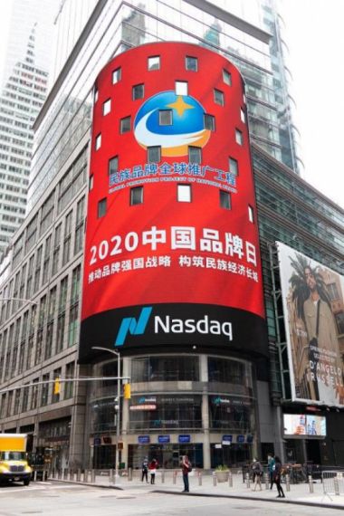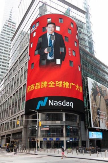 (民族品牌全球推广大使胡盛光登陆美国纳斯达克大屏)