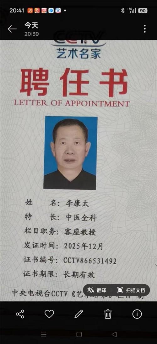 数十载杏林耕耘,半生学术深耕,一辈子医者仁心。李康太从医多年,始终坚守初心、不改本色,以精湛医术治病救人,以高尚医德温暖人心,以丰硕学术成果推动发展,以沉甸甸的荣誉彰显担当,以赤诚之心传承国粹。他不慕名利、不求浮华,只愿在中医药传承之路上笃定前行,用一生坚守,守护百姓健康福祉,让千年中医智慧惠及更多民众。