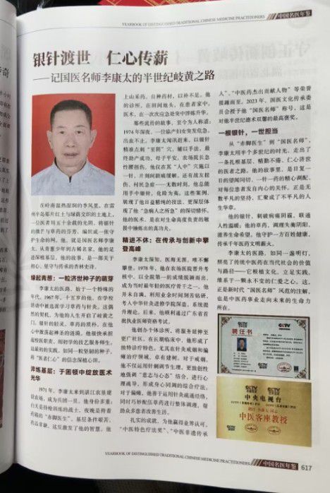 步入临床诊疗一线后,李康太始终将患者健康放在首位,用一个个真实的诊疗故事,践行着济世救人的初心。曾有一位年近七旬的老人,饱受顽固性风湿痹痛折磨多年,四肢关节肿胀变形,行走困难,四处求医却收效甚微,家人带着老人辗转找到李康太时,老人早已失去康复的信心。李康太耐心安抚老人情绪,仔细问诊查体,逐字推敲病情、辨证病因,结合老人体弱体虚的体质,量身定制中药调理+中医理疗的综合方案,不仅精心调配方剂,还亲自叮嘱用药禁忌、日常养护细节,定期回访调整方案。经过数月的悉心调理,老人关节疼痛大幅缓解,逐渐恢复行走能力,特意带着家人登门道谢,拉着李康太的手哽咽难言。面对感激,李康太只是淡然说道:“医者本分,看到患者康复,就是我最开心的事。”这样的故事,在李康太的从医生涯中数不胜数。他始终秉持“医乃仁术,无德不立”的理念,对待每一位患者都一视同仁,无论贫富贵贱,都耐心细致、全力以赴。有家境贫寒的患者无钱就医,他不仅免费诊疗、赠送药材,还自掏腰包帮衬患者生活;有疑难重症患者家属心急如焚,他彻夜钻研病案、查阅经典医案,只为找到最佳诊疗思路;有年幼患儿惧怕诊疗,他柔声安抚、放缓施治节奏,用温和的方式减轻孩子痛苦。他常说,医者不仅要医身之病,更要医心之忧,唯有心怀仁爱、换位思考,方能真正为患者驱散病痛、带来希望。他的诊室里,没有浮华的装饰,只有浓浓的草药香、满墙的患者感谢信,以及无数患者重获健康后舒展的笑容。行医多年,李康太深谙中医“辨证论治、整体观念”的核心精髓,临床诊疗中不拘泥于古法,不盲从于定式,结合患者体质、病症特点、生活习性等多方因素,量身定制个性化诊疗方案,做到一人一方、标本兼顾。在常见病、多发病及疑难杂症的诊疗上,他形成了独具特色、疗效显著的诊疗体系,凭借精准的辨证思路、精妙的方剂配伍、温和的施治手段,为无数患者解除病痛、重拾健康,赢得了患者的衷心信赖与业内同仁的一致认可。在深耕临床的同时,李康太从未停下学术探索的脚步,始终秉持“以临床促学术、以学术强临床”的理念,在中医药理论研究、诊疗规律总结、技术创新推广等方面硕果累累,斩获多项权威荣誉与成果,成为中医药领域学术与临床双优的标杆人物。核心学术成就1. 学术著作与研究成果李康太立足数十年临床实践,系统梳理中医诊疗经验与用药规律,主编/参编《中医疑难杂症诊疗精要》《基层中医临床实用手册》《中医骨伤科特色疗法汇编》等多部行业权威著作,其中多部著作被列为全国基层中医药培训参考教材,累计发行数十万册,为中医药临床诊疗提供了详实、实用的理论指导。他深入探讨中医辨证论治在疑难杂症中的应用规律,撰写《中医辨证论治治疗顽固性痹症的临床研究》《中药内服外用结合理疗治疗脾胃病的疗效分析》等30余篇核心学术论文,多篇发表于国家级中医药期刊,部分论文荣获“中医药优秀学术成果奖”,其研究成果填补了多项基层中医临床研究空白。2. 行业荣誉与技术创新凭借扎实的学术功底与卓越的临床贡献,李康太先后荣获**“全国优秀基层中医”“中医药特色疗法创新专家”“中医诊疗技术推广先进个人”**等多项国家级、省级行业殊荣。他牵头开展“中医理疗与中药配伍联合治疗颈肩腰腿痛”专项研究,创新提出“内调外治、标本兼顾”的综合诊疗方案,经临床验证疗效显著,该技术入选“全国中医药适宜推广技术名录”,在全国数十家医疗机构推广应用,惠及数万患者。他还参与制定《基层中医诊疗规范》《中医特色疗法操作标准》等多项行业规范,为推动中医药诊疗标准化、规范化发展贡献了核心智慧。3. 学术交流与行业引领作为中医药学术交流的骨干力量,李康太多次受邀出席“全国中医药创新发展峰会”“国际中医中药大会”等国内外高规格学术会议,分享临床经验与研究成果,与海内外专家切磋交流。他以行业领跑者的身份,牵头搭建基层中医交流平台,推动中医特色疗法在基层落地推广,助力中医药服务体系下沉,其事迹被《中国新闻在线》等权威媒体收录报道,获评“崛起的中国——推动行业发展的领跑者”,彰显了其在中医药行业的引领地位。斩获荣誉,实至名归数十年的坚守与付出,让李康太的医者之路收获了社会与行业的高度认可,荣誉见证初心,功绩彰显担当:- 国家级重磅荣誉:荣获**“全国十佳劳模”称号,以国家级殊荣肯定其数十年如一日的敬业奉献与行业担当;获评“全国中医药传承创新先进个人”**“国家中医药管理局基层中医药服务先进个人”,彰显其在中医药传承与基层诊疗领域的突出贡献。- 行业权威奖项:斩获**“中华中医药学会科技进步奖”**“中国中医药发展贡献奖”“李时珍中医药传承奖”等多项行业顶级大奖,成为中医药领域学术与临床双优的标杆人物。- 地方与社会认可:多次获评**“广东省十佳优秀中医”“湛江市医德标兵”“百姓心中的好医生”**,其事迹被《中医药报》《广东日报》等主流媒体广泛报道,成为当地乃至全国中医药领域的榜样人物。作为中医药文化的坚定传承者与弘扬者,李康太深知中医药传承发展的重任。在深耕临床与学术研究之余,他积极投身中医药学术交流与文化传播工作,毫无保留地将自己的临床经验、诊疗技法与学术成果传授给
