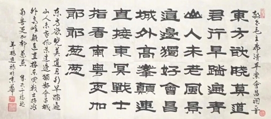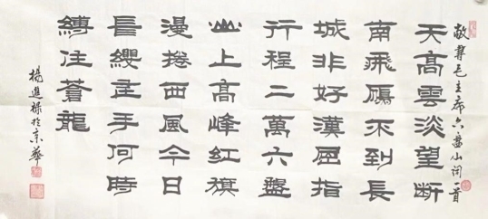 他对书法和绘画皆有极高的造诣,对当代艺术发展具有重要的作用,被业界称为“书画双绝”。 他的书法楷、草、隶、篆,以隶为重,能写出七种变化,代表作有《祖国万岁》、《福·寿·康·宁》、《沁园春》等;绘画山水、人物和花鸟,代表作有《江山如此多娇》、《秦岭烟云》、《中国出了个毛泽东》等,其中毛主席诞辰画像已被毛新宇将军收藏。他的艺术作品气度超群、博大宽阔,绘画讲求人境合一、构图巧妙、清新悠远、笔精墨妙,色彩明快,栩栩如生、意境深远;书法行云流水、妙笔升华,令人拍案叫绝。